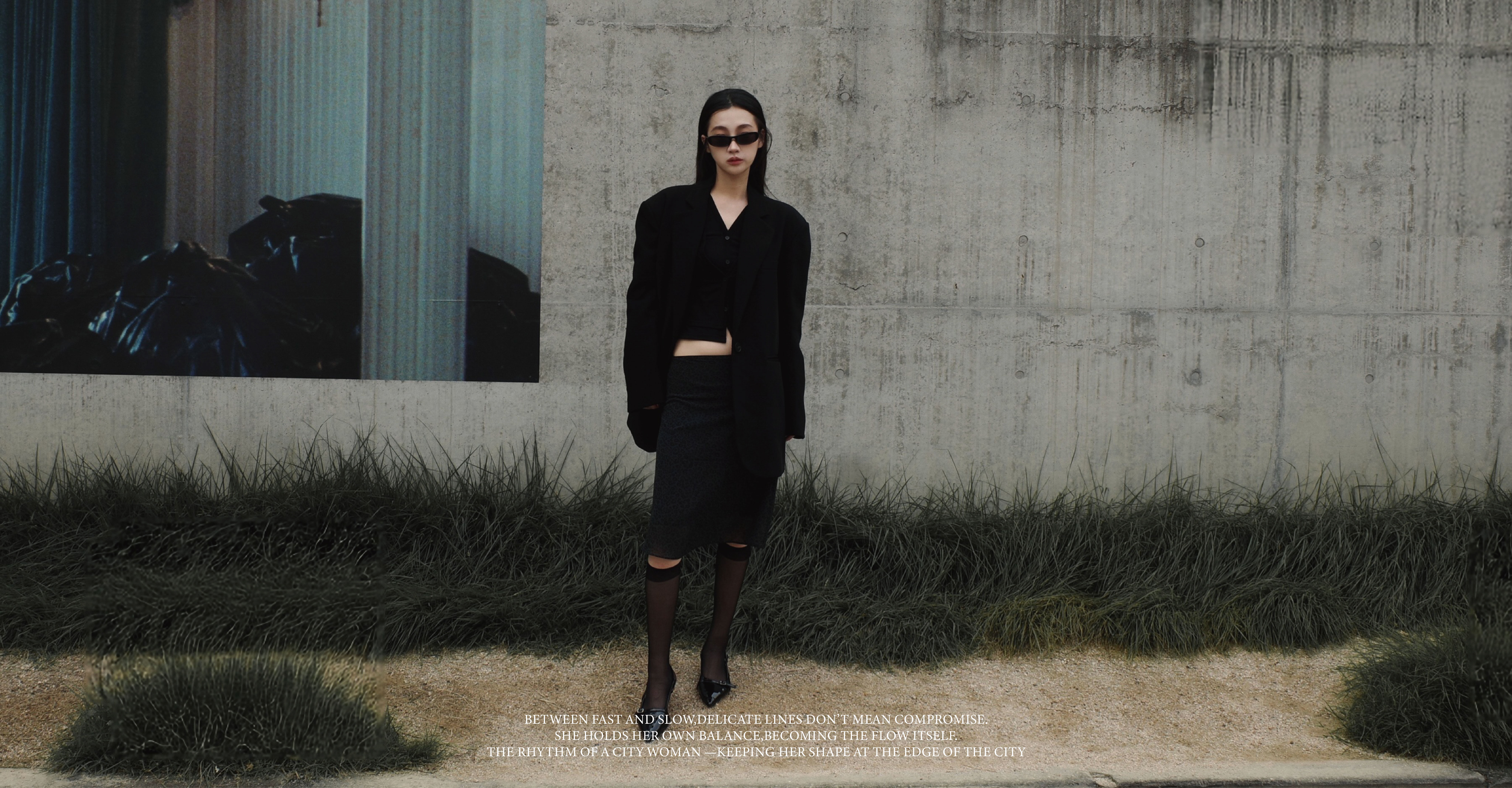 NM001-BLACK 翻領拉鍊剪裁短版上衣
